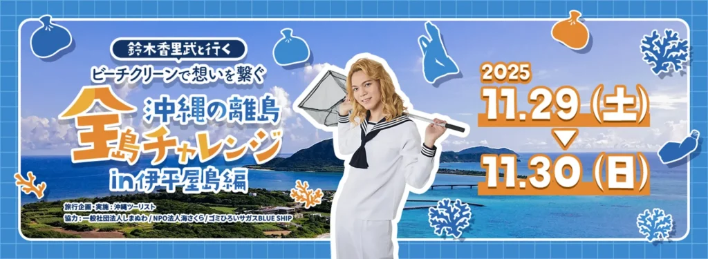 2025年11月29日(土)~30日(日)「鈴木香里武と行く ビーチクリーンで想いを繋ぐ 沖縄の離島 全島チャレンジ in 伊平屋島編」のご案内
